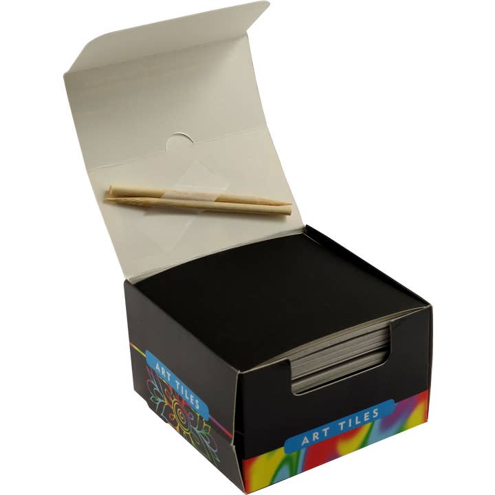 Add drama to your artwork with Scratch and Sketch Art Tiles ! Use the included stylus to scratch the black coating. Create drawings and designs in swirling rainbow colors and glittery holographic foil. Set includes 150 tiles! For artists and crafters of all ages and skill levels. Keep a set with you for creative expression on the go! Tiles measure 3-1/2'' square.
