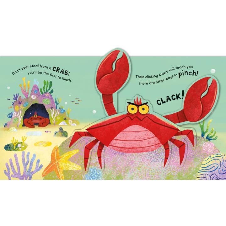 If you meet a sea creature, it's best to be polite. Otherwise, don't be surprised, if they give you a fright! Don't ever irritate a whale or steal from a crab, scare an octopus or tease a clownfish. Little ones will adore the clever pop-ups on each page as well as the witty, silly text. Packed full of fascinating ocean creatures from crabs to sharks, this is the perfect book to encourage your child to read along to. Pop with Up Book; 8 5/8 X 9 1/2 inches; 10 pages.