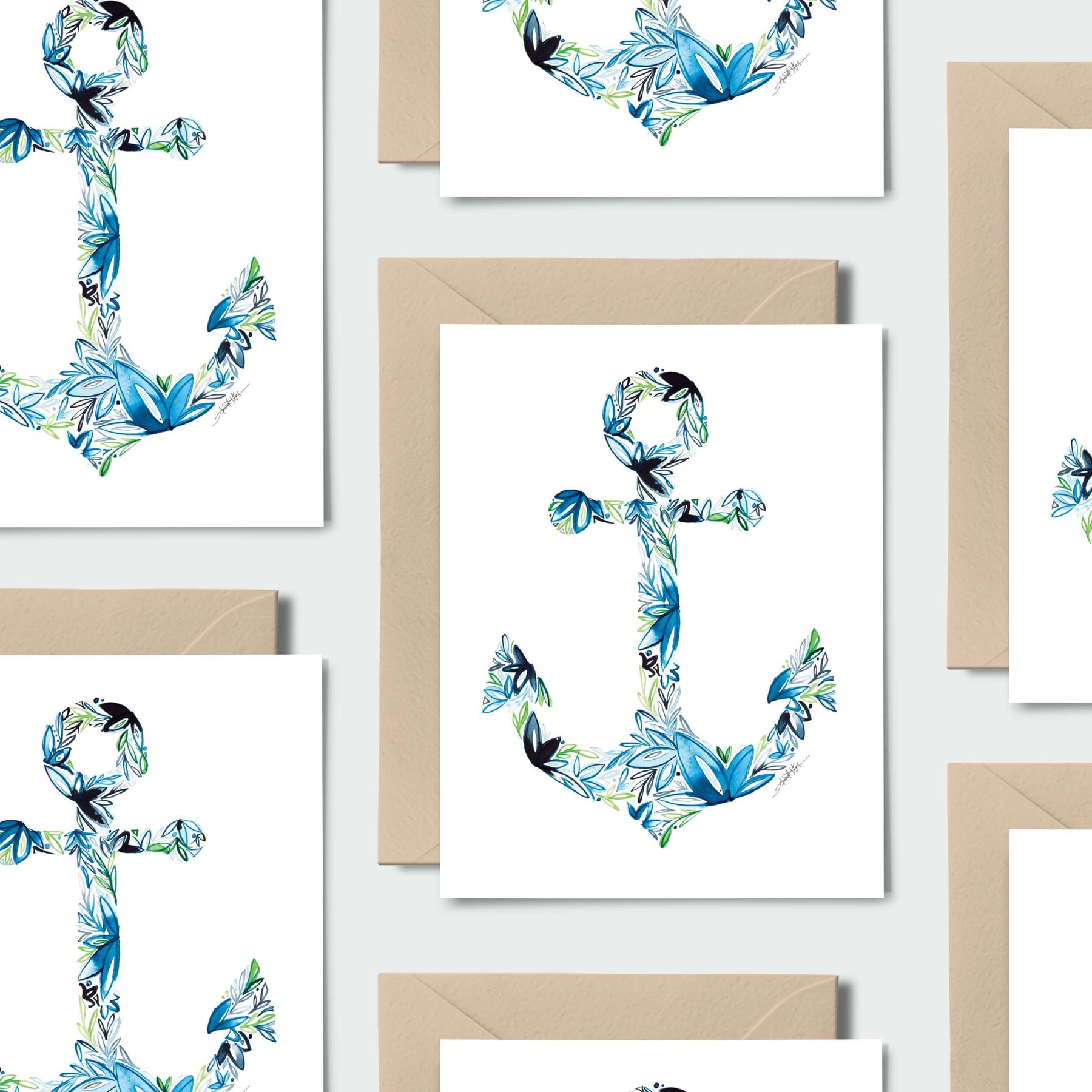 Brand New! Our anchor note card box set features 8 blank notecards, kraft envelopes and envelope stickers. The original anchor piece was created by hand in Amanda Klein’s signature floral style using liquid watercolor and acrylic ink. We also offer a frameable companion print option.