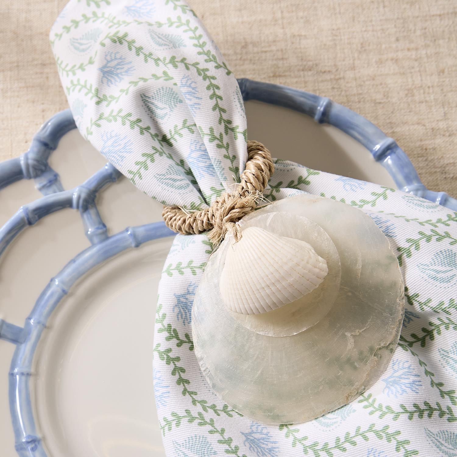 Elevate your tablescape with the charm of the seaside with the Set of 4 Hand-Crafted Capiz Shell Napkin Rings. Each ring is meticulously handcrafted with Capiz Shell, Litub Shell, Twine, and Rattan, showcasing a variety of textures and natural elements. The coastal elegance of these napkin rings will transport you to a beachside retreat with every meal.
