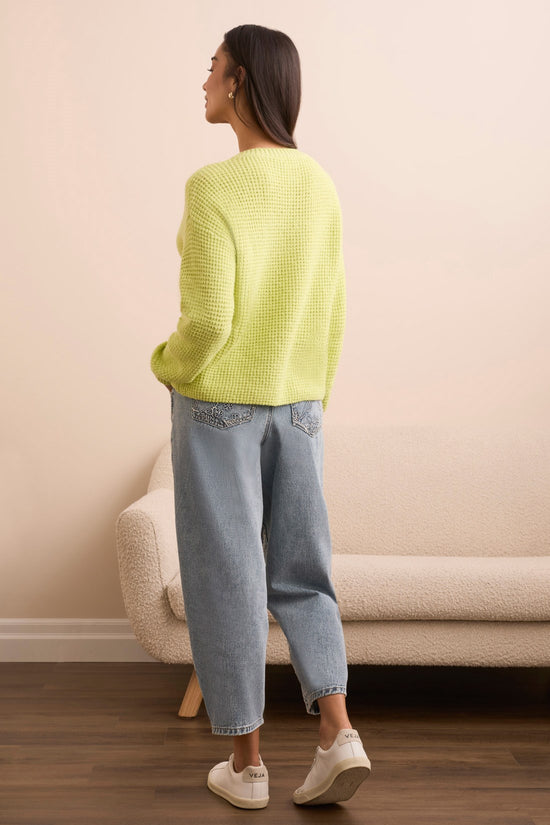 Embrace cooler weather with this cozy sweater, featuring a flattering v-neckline and long sleeves for added warmth. The relaxed fit is enhanced by drop shoulders, offering a comfortable and laid-back silhouette. Crafted from spongy yarn, it provides a soft, inviting texture, while a pop of color adds a vibrant touch to your look, making it a go-to favorite for chilly days.
